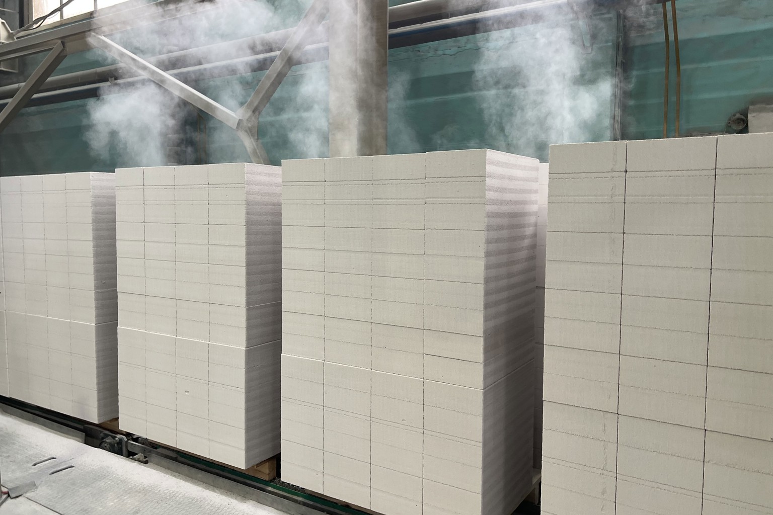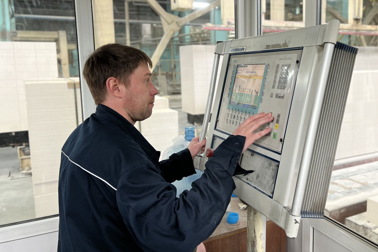 Мы производим газобетонную продукцию на технологической линии Wehrhahn — лидирующего производителя оборудования для изготовления автоклавного газобетона на рынке СНГ. Производственный процесс состоит из следующих этапов: помола песка, смешивания и дозирования, нарезки блоков, автоклавирования и упаковки. Эффективное автоматическое оборудование дает возможность производить изделия с высокоточной резкой, безупречной геометрией и стабильными показателями качества.